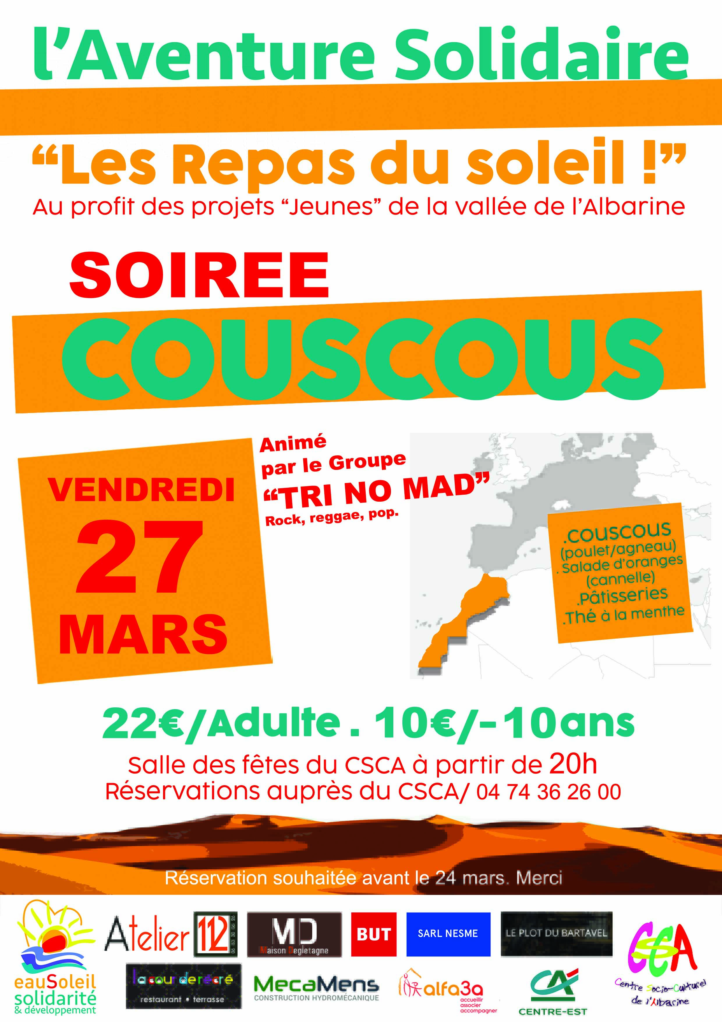 Repas du soleil le vendredi 27 mars à la salle des fêtes du CSCA